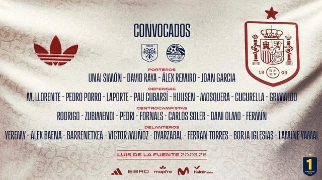 本周五,西班牙队公布新一期大名单,亚马尔、罗德里、佩德里、苏维门迪在列,霍安·加西亚入选。3月的国际比赛周,西班牙将先后与塞尔维亚、埃及进行友谊赛。